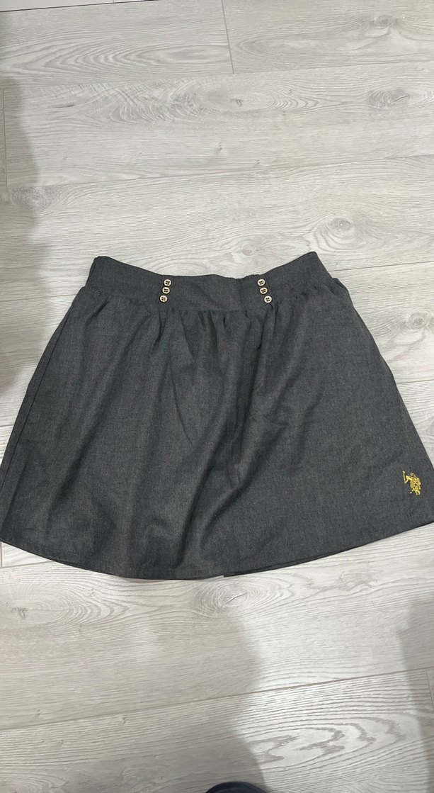 Gri renkte, düğmeli ve bol kesim mini etek. Sentetik kumaştan üretilmiş, günlük ve rahat sokak stili için uygundur. Uspa M-L beden uyumlu