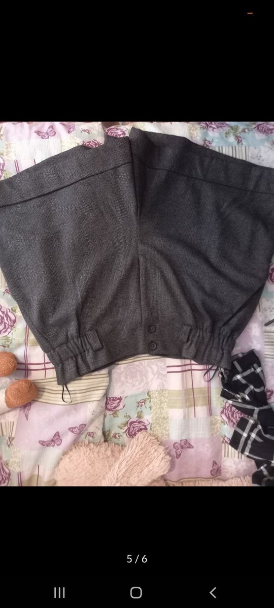 Gri renkli, düğmeli ve bol kesim mini hamile şortu, yumuşak sentetik kumaştan günlük rahat kullanım için uygundur.