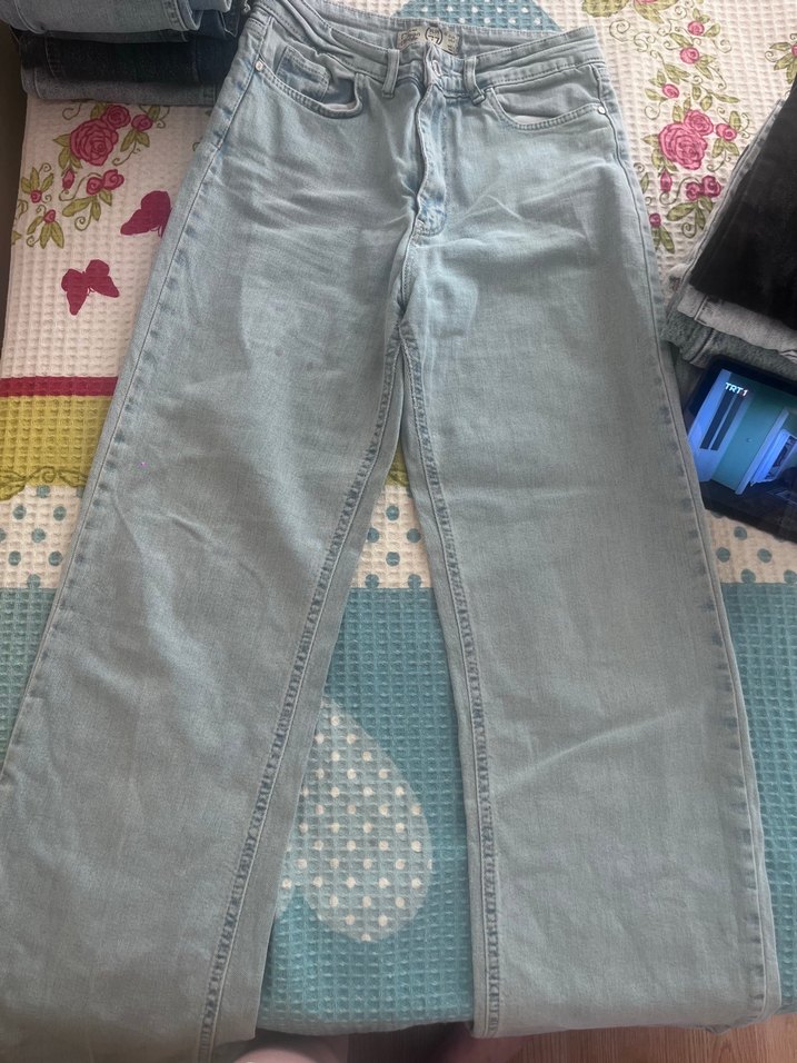 Gri renkte, düğmeli ön kapamalı, normal boy kadın denim pantolon. Rahat kesimiyle gündelik kullanıma uygundur.