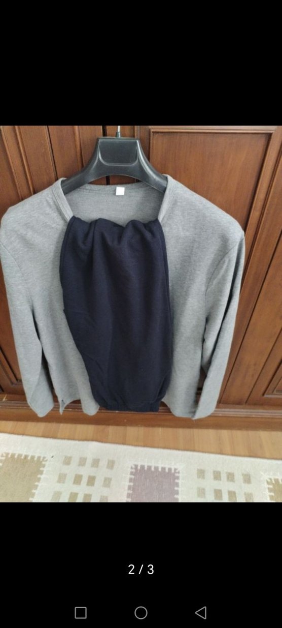 Gri renk, düğmeli ve pamuklu erkek uzun kollu ve bisiklet yaka tasarıma sahiptir. Rahat ve bol kesimdir, günlük kullanıma uygundur çok yeni .