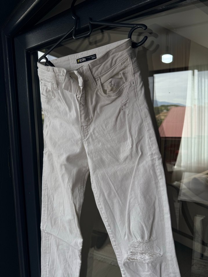 Beyaz Düğmeli Rahat Kesim Kadın Jean mavi Barcelona Model Hiçbir sorunu yok