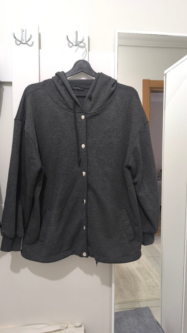 Gri, düğmeli, uzun kollu, bisiklet yaka ve rahat kesime sahip midi uzunlukta kadın ceket. Yumuşak dokusu ile günlük sokak stiline uygundur. ️