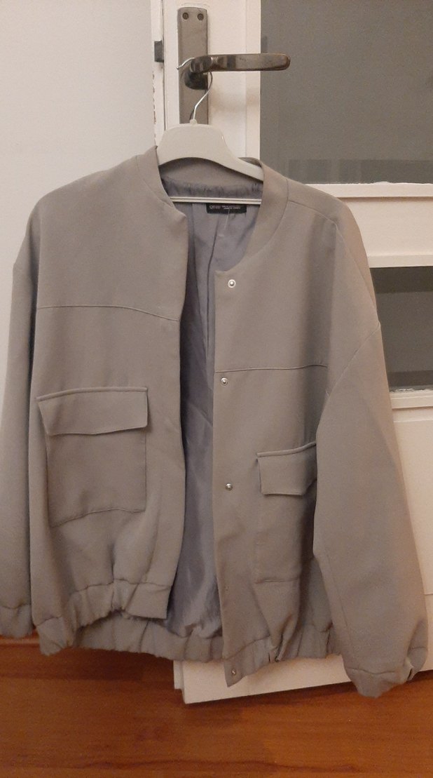 Gri Düğmeli Rahat Kesim Kadın Ceket