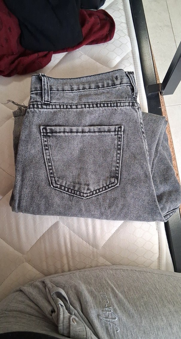 Gri Düğmeli Salaş Denim Kadın Pantolon