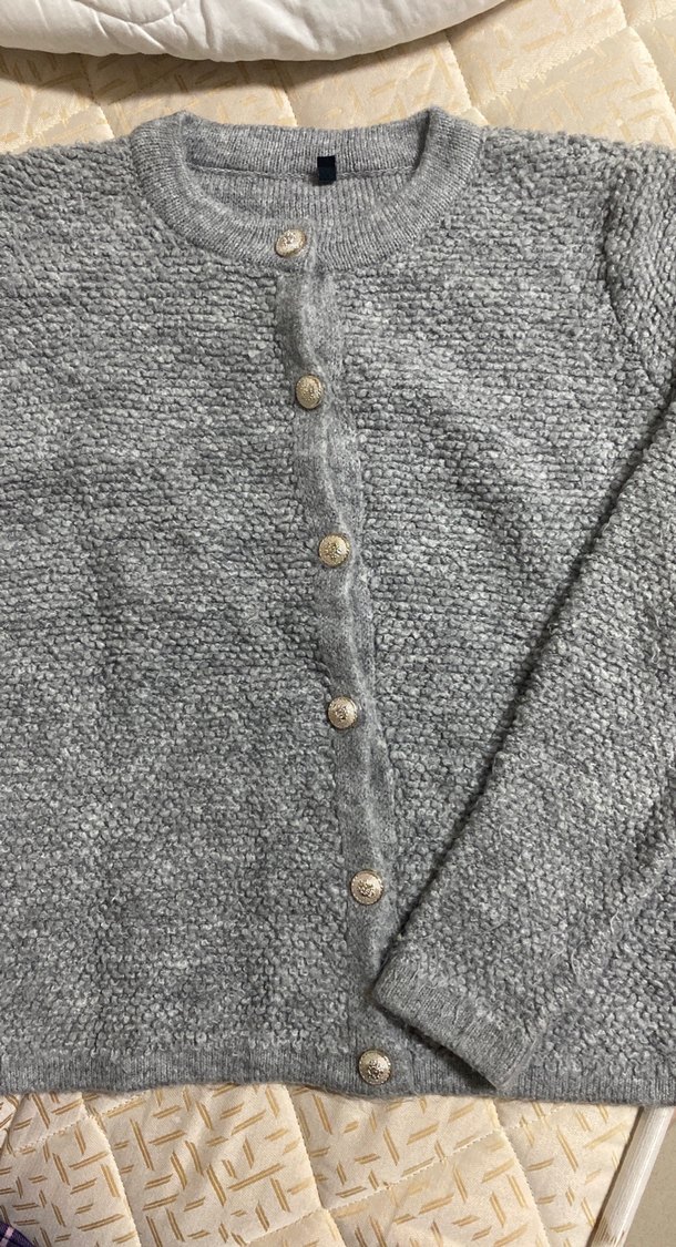 Gri triko dokulu, düğmeli, yuvarlak yakalı ve uzun kollu kadın hırkasıdır. Rahat kesimiyle günlük kullanıma uygundur. sıfır ürün gibidir herhangi bi deformesi yoktu