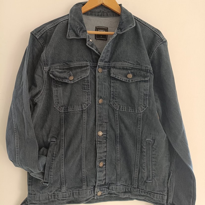 Gri renk, düğmeli, uzun kollu, yakalı, bol kesim unisex denim ceket. Günlük kullanıma uygun rahat bir stil sunar. 55*63