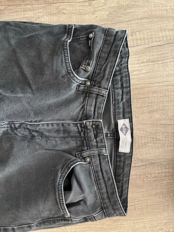 Gri denim kumaştan, düğmeli ve bol kesimli kot pantolon. Normal midi boyda, günlük kullanıma uygun rahat bir model. Lee Cooper marka