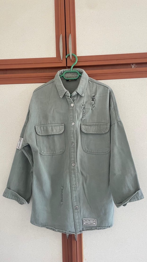 Gri denim kumaştan yapılmış, düğmeli ve uzun kollu bir gömlek. Salaş kesimi ve yakası notched lapel modelindedir. İki ön cep bulunur, günlük kullanıma uygundur.