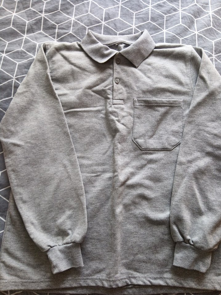 Gri renkli, düğmeli ve uzun kollu yakalı erkek sweatshirtü. Yumuşak ve sıcak kumaştan, cep detaylı ve rahat kesimlidir.