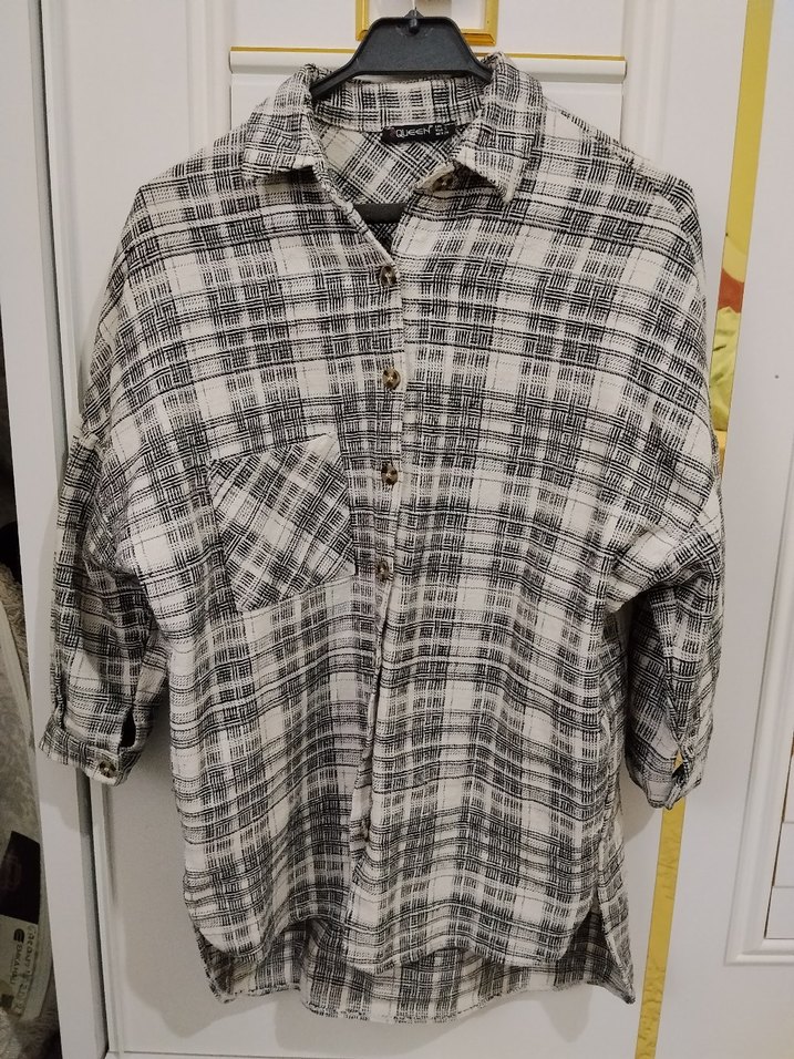 Gri Düğmeli Uzun Kollu Kadın Gömlek