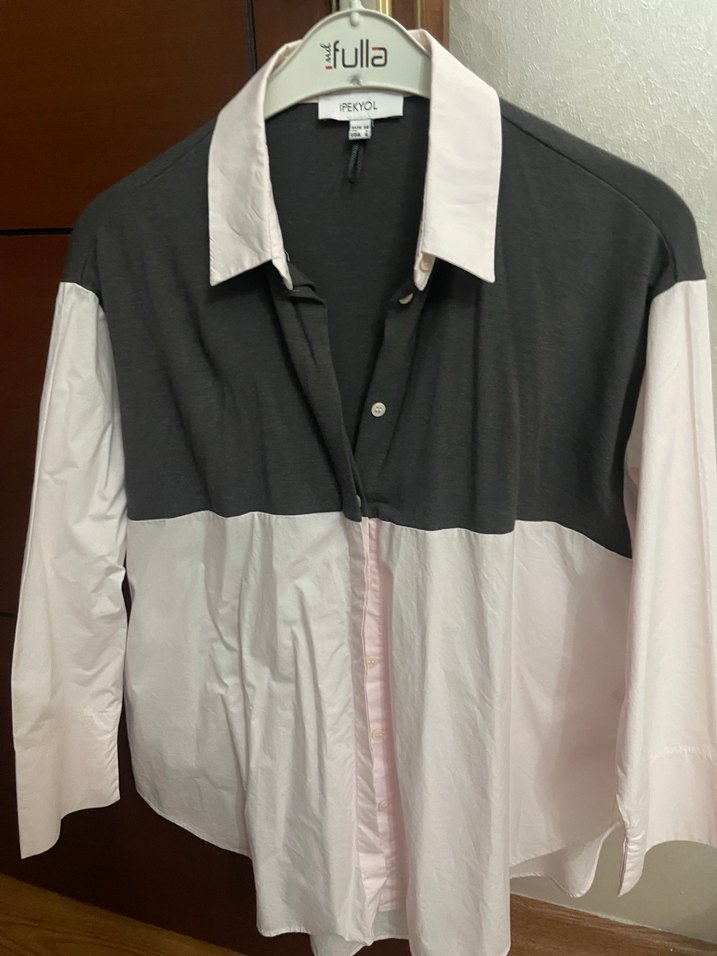 Gri Düğmeli Uzun Kollu Kadın Gömlek