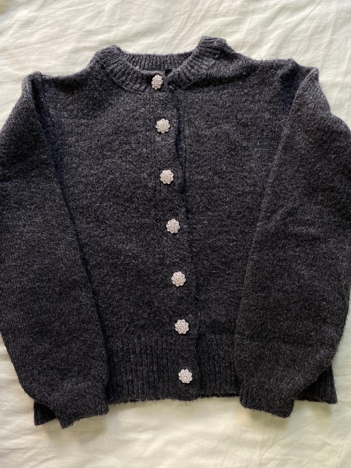 Gri Düğmeli Uzun Kollu Kız Hırkası