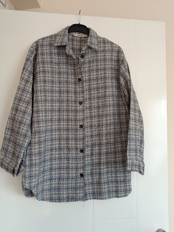 Gri keten gömlek, uzun kollu ve düğmeli tasarıma sahiptir. Notlu yaka ve bol kesim ile günlük kullanıma uygundur.