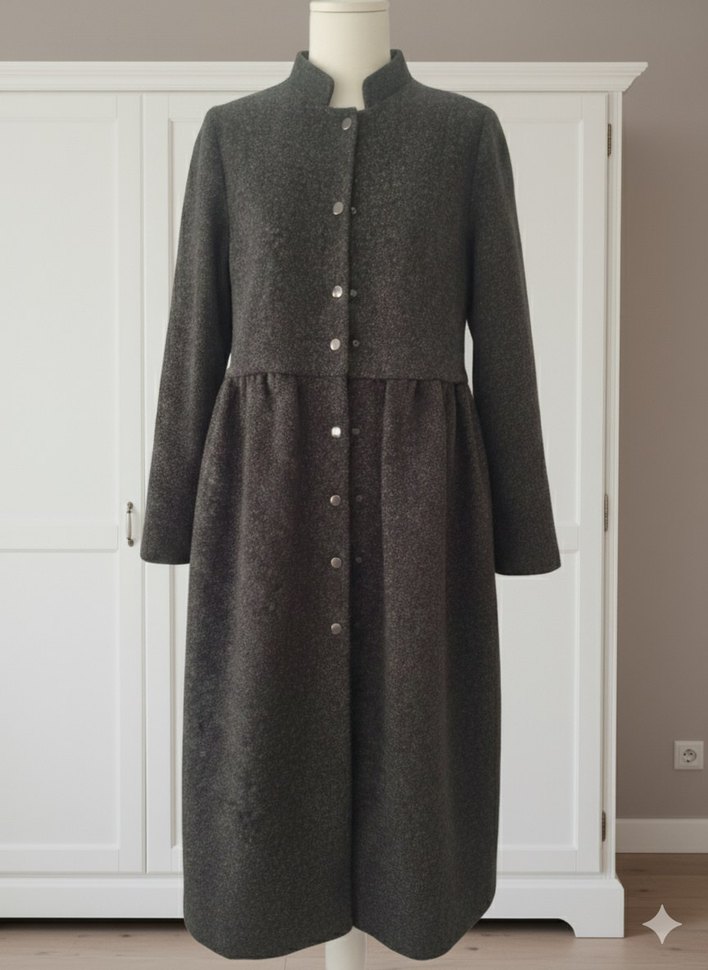 Gri Düğmeli Uzun Yün Kadın Kaban