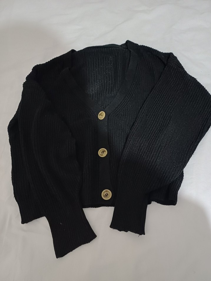 Gri renkli, düğmeli, V yakalı, uzun kollu, rahat kesim ve midi boyda kadın hırka. Günlük kullanıma uygun, sade ve konforlu.
