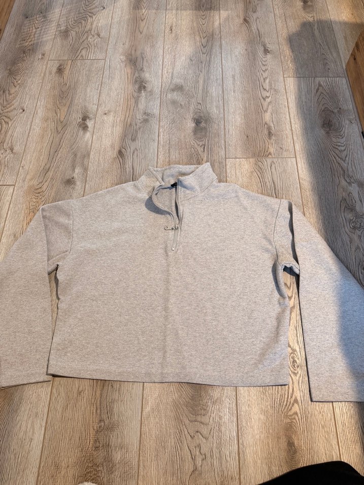 Uzun kollu, düğmeli yüksek yakalı, gri renkli, rahat kesim kadın sweatshirt. Yumuşak ve sıcak kumaştan, gündelik kullanıma uygun. Trendyolmilla markadır.