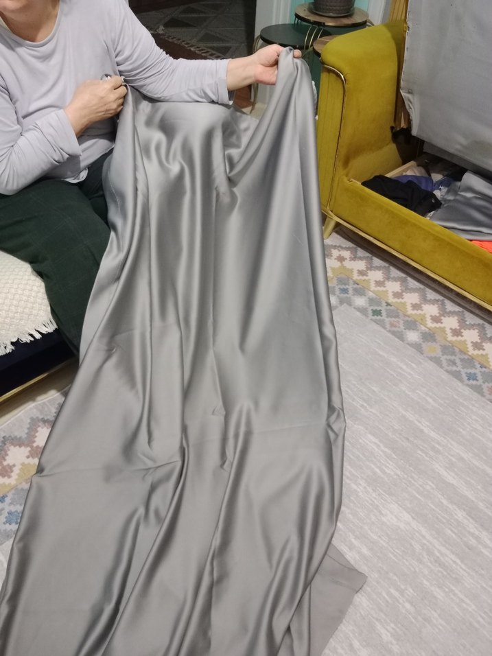 Düz desene sahip, gri renkli, pürüzsüz yüzeyli saten fon