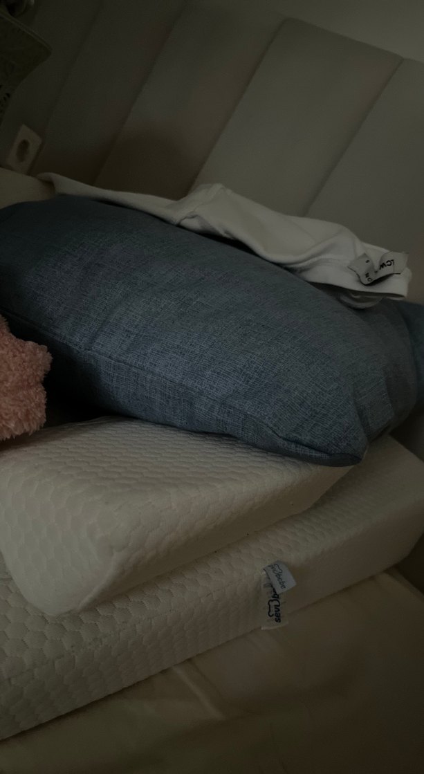 Düz desensiz, gri renkte rahat ve destekleyici bir yastık. ️