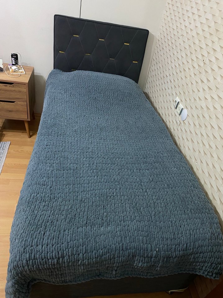 Yumuşak dokulu, gri renkli ve düz desenli yatak örtüsü. Rahat bir kullanım sağlar. İstenilen renk örülür