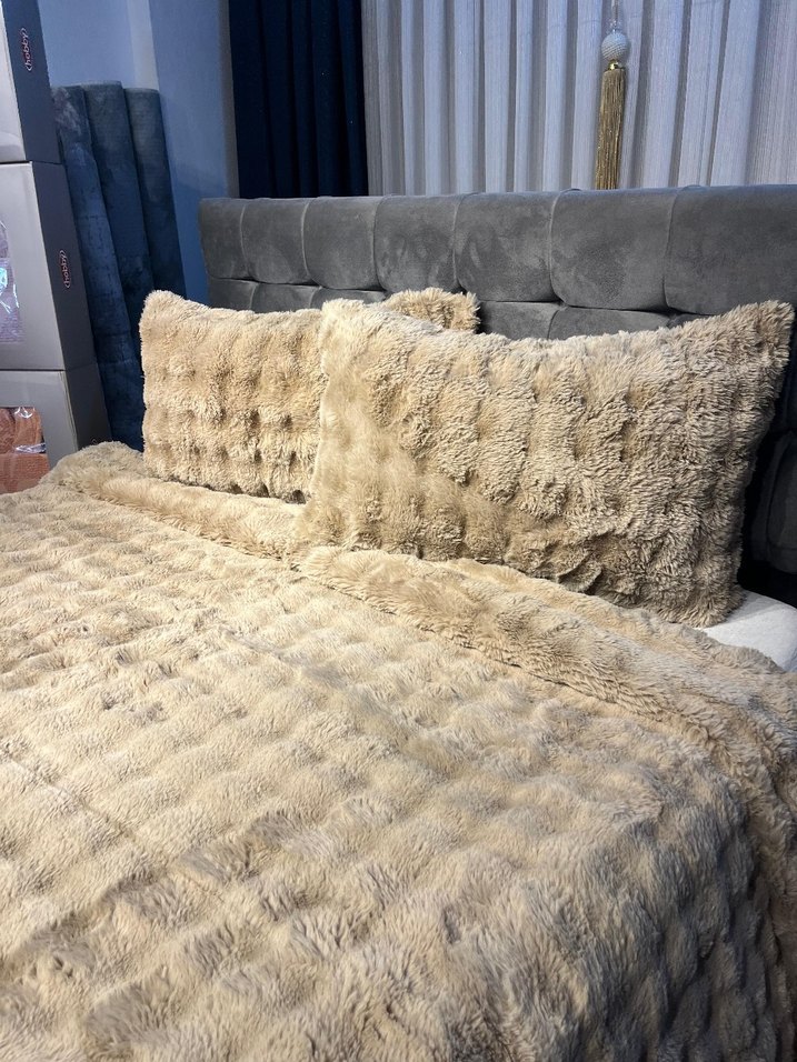 ⚜️Merinos Diamond Tavşan Tüyü Kadife Battaniyeli Yatak Örtüsü Takımı Türkiye’nin her yerine ücretsiz kargomuz mevcuttur. Kapıda Ödeme yapabilirsiniz. •Çift Kişilik (220x240 cm) •Yastık Kılıfı: 50x70 (2 adet) Zarif ve Peluş 220x240 cm ölçülerindeki bu yatak örtüsü, olağanüstü yumuşaklık ve sıcaklık sağlamak için tasarlanmıştır ve bu da onu her çift kişilik yatağa mükemmel bir ek yapar. Lüks Tavşan Tüyü Yüksek kaliteli tavşan tüyünden üretilen bu yatak örtüsü, doğal tüyün lüks hissini taklit eden yumuşak, peluş bir doku sunar. Tüy malzemesi mükemmel yalıtım ve rahat bir his sağlayarak sıcak ve konforlu bir uyku deneyimi sağlar. Gelişmiş bubble soft teknolojisine sahip yatak örtüsü, zamanla kabarık ve yastıklı dokusunu korur. Bu yenilikçi tasarım, yatak örtüsünün tekrar tekrar kullanıldıktan ve yıkandıktan sonra bile yumuşak ve rahat kalmasını sağlar. Cömert Boyut: 220x240 cm boyutlarıyla bu çift kişilik yatak örtüsü, çoğu çift kişilik yatak için yeterli örtü sağlar.