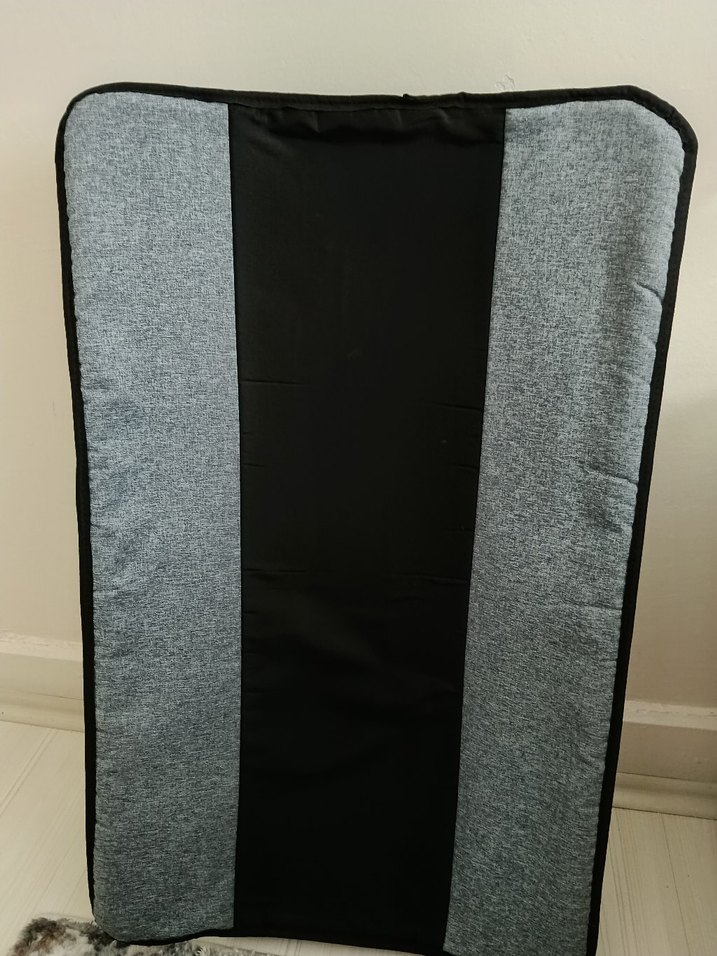 Gri ve siyah renklerde, desensiz yüzeye sahip egzersiz matı, rahat destek sağlar.