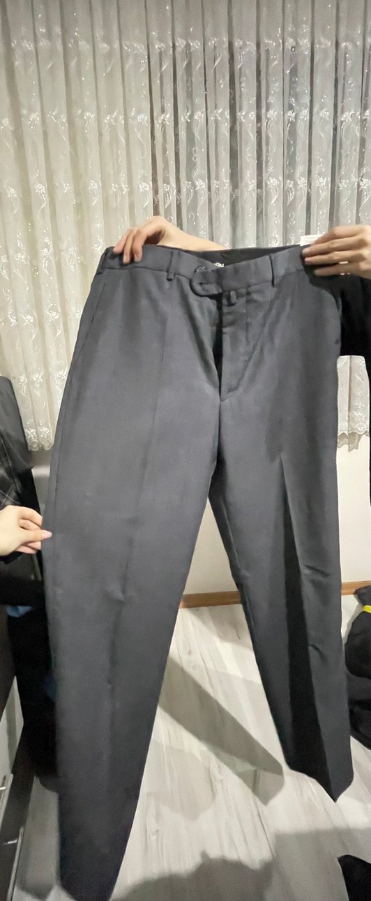 Gri renk, düz kesim erkek pantolon, Kiğılı bedenin fotografı var