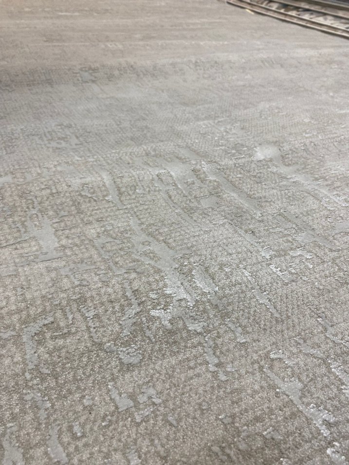 Bu modern halı, gri renk tonunda ve desensiz tasarıma sahip olup, mekana sakin ve çağdaş bir hava katar.