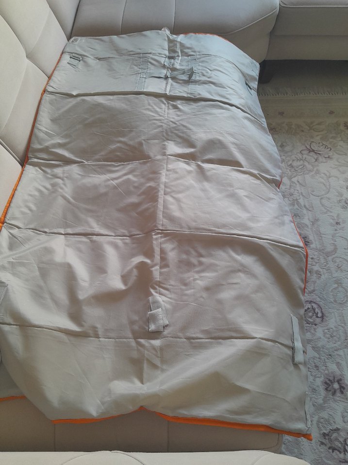 Gri renkte, düz renkli ve turuncu kenar detaylı oyun parkı içinin minderidir. sıvı geçirmez.
