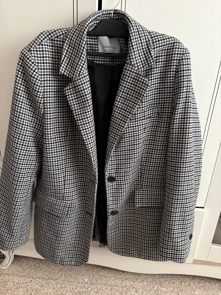 Gri Ekose Desenli Düğmeli Kadın Blazer
