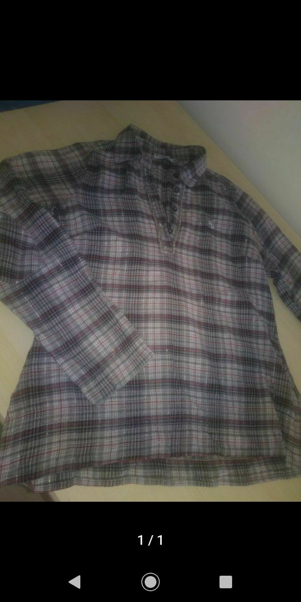 Gri Ekose Desenli Düğmeli Kadın Gömlek