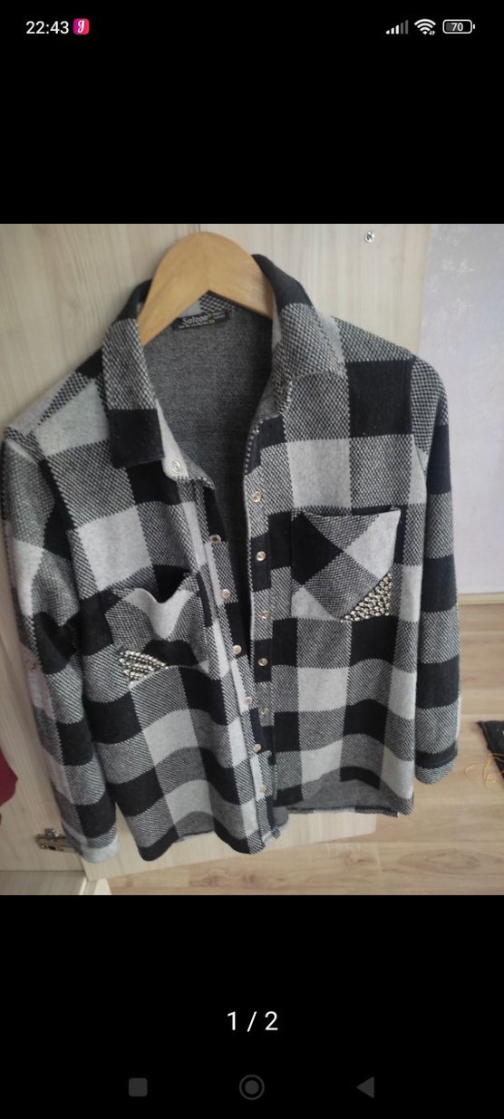 Gri ekose desenli, düğmeli ve uzun kollu bu gömlek, notlu yaka ve salaş kesime sahiptir. Ceplerinde çivili detaylar bulunur, günlük sokak stili için uygundur.