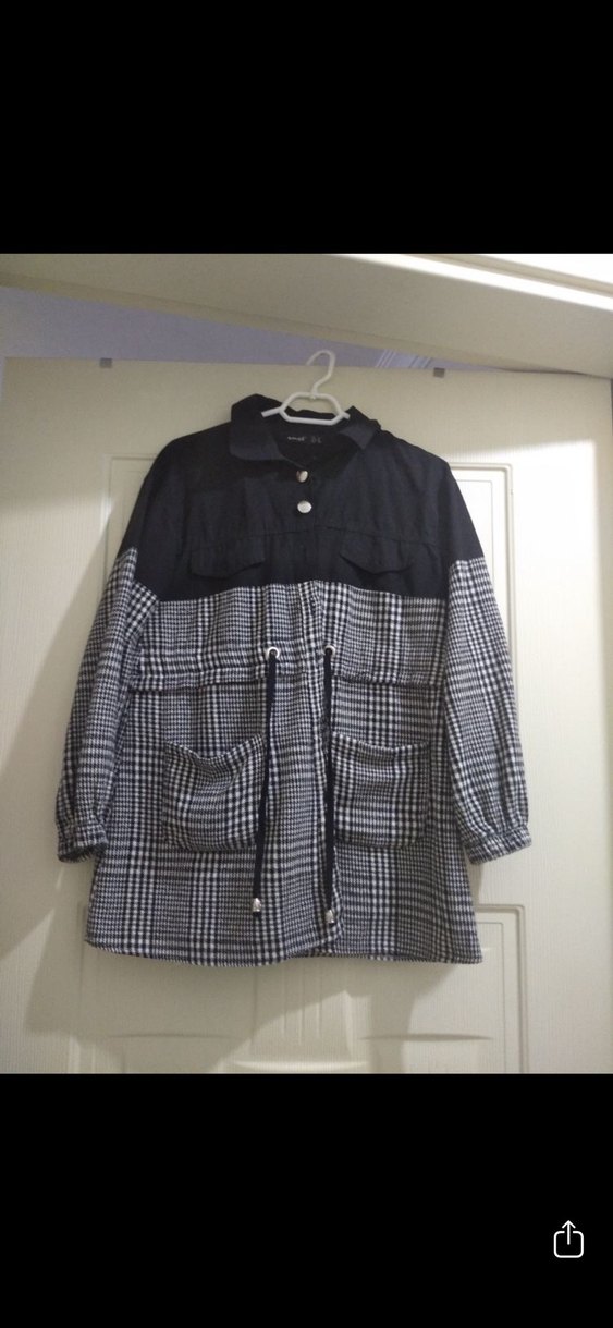 Gri ekose desenli, düğmeli, uzun kollu, normal boy midi kadın gömleği. Rahat kesimi ve çıtçıtlı yaka detayıyla günlük sokak stiline uygundur.