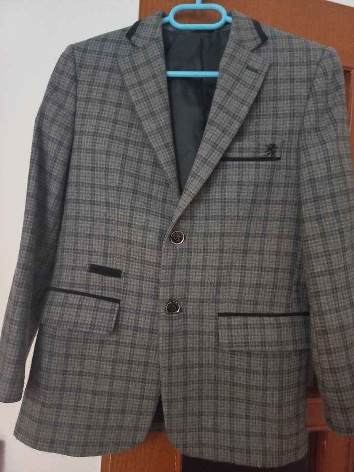 Gri Ekose Desenli Erkek Ceket.10.11 yaş