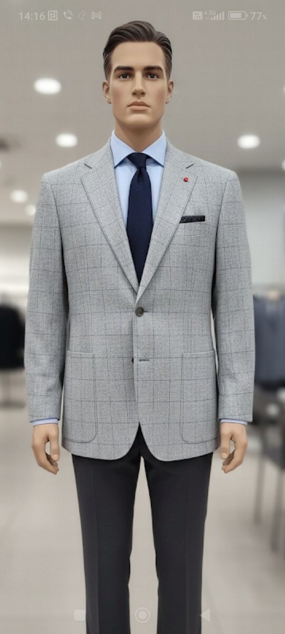 Gri Ekose Desenli Erkek Ceket