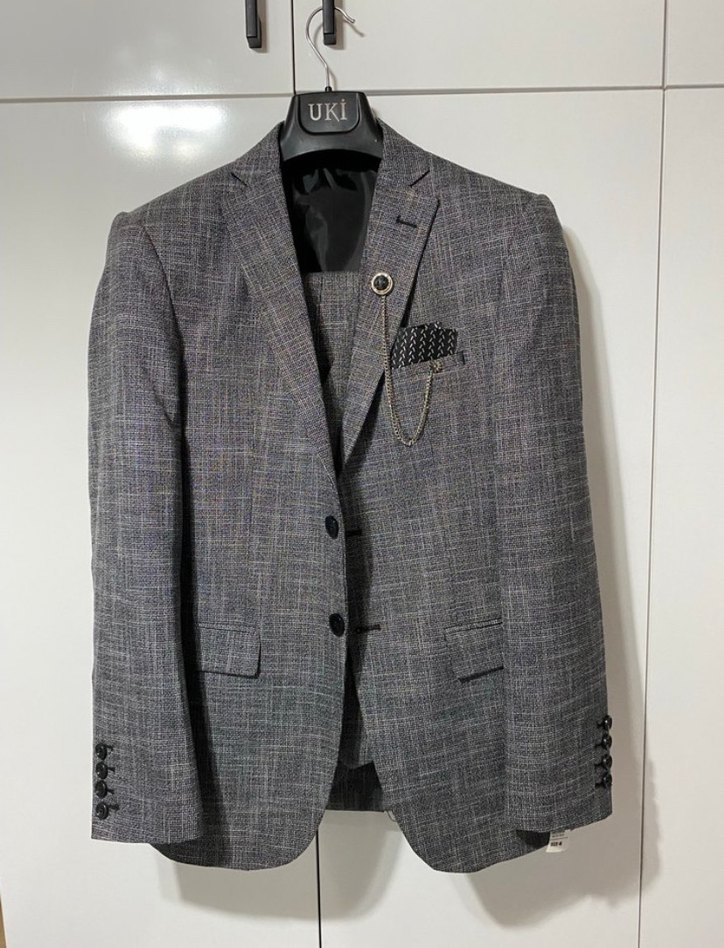 Gri renkte, ekose desensiz, regular fit ve kısa boyda erkek ceket. Düğmeli, çentikli yaka ve klasik şıklık sunar. Ofis için uygundur.