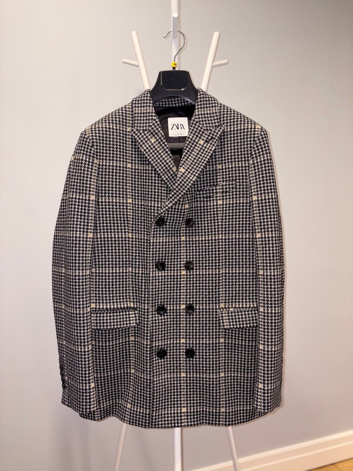 Gri Ekose Desenli Erkek Kruvaze Mont