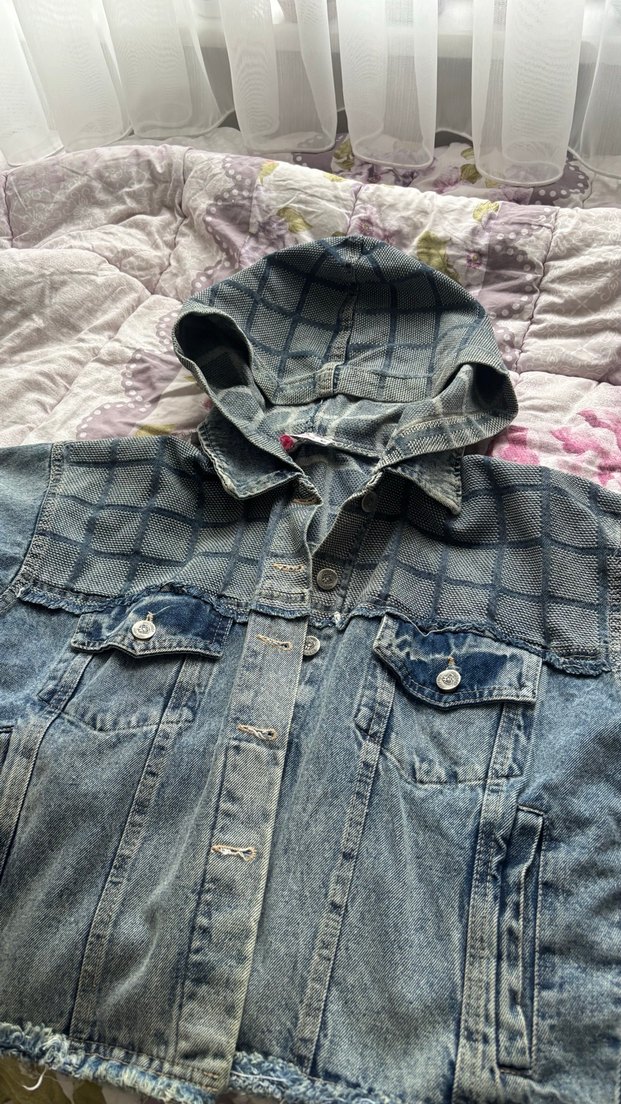 Gri ekose desenli kadın denim ceket, bol kesim ve uzun kolludur. Notlu yaka ve midi boyuyla sokak stilini günlük rahatlıkla buluşturur. Şeffaf detaylar mevcuttur.
