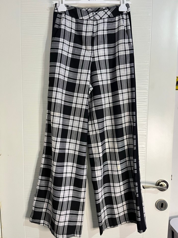 Gri Ekose Desenli Kadın Kumaş Pantolon