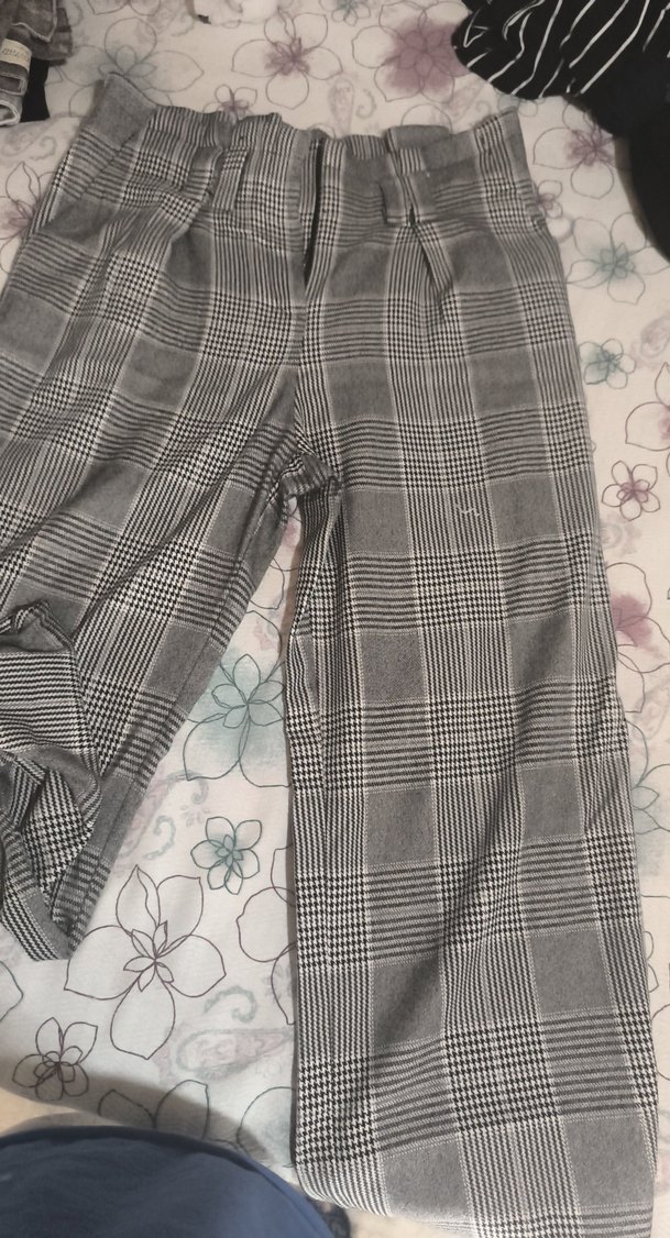 Gri Ekose Desenli Kadın Kumaş Pantolon