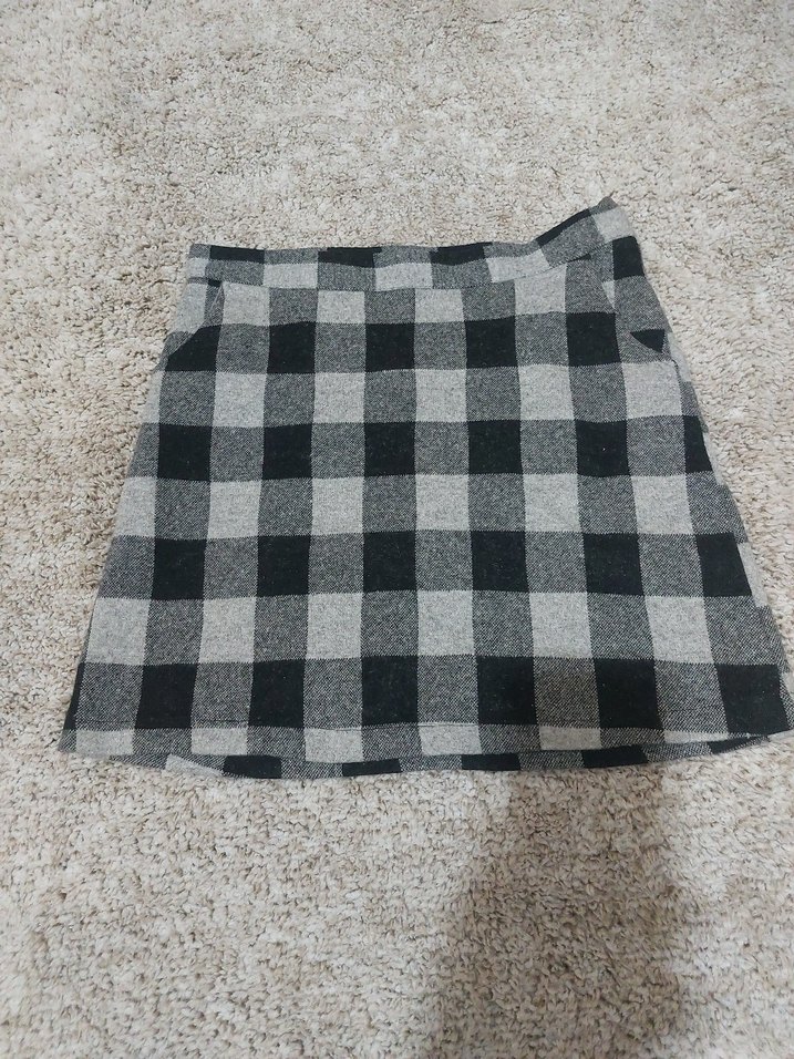 Gri ekose desenli midi etek,dar kesim ve yumuşak kumaş ile yandan fermuarlıonden cepli, günlük kullanım için uygundur.L