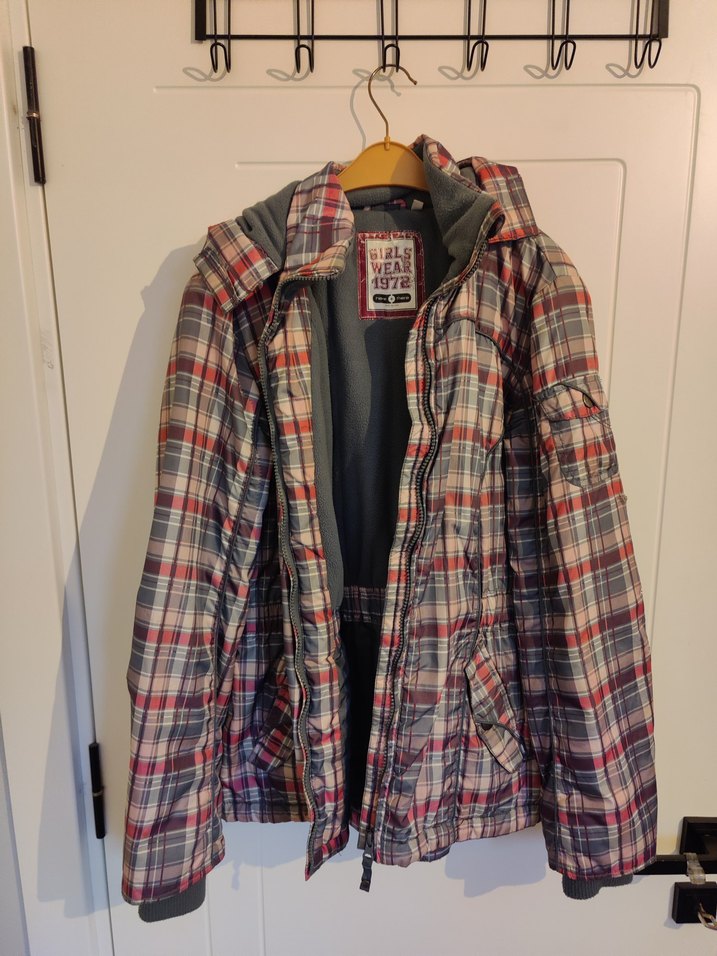 Gri ekose desenli, uzun kollu ve fermuarlı kadın kış ceketi. Salaş kesimi ve yakası notched lapel tarzındadır. Günlük kullanım için uygundur. ❄️