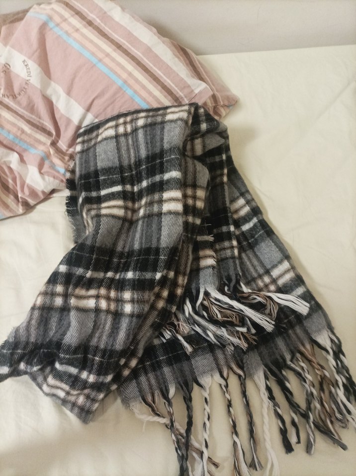 Gri Ekose Desenli Kadın Şal