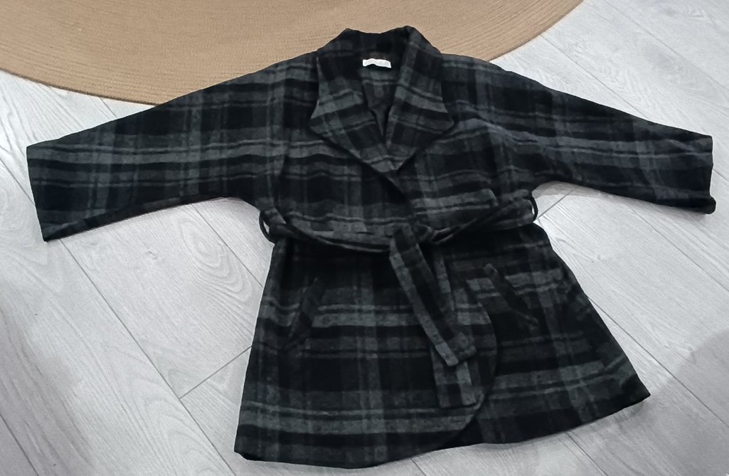 Özel tasarımlar yapan bir butikten alınmıştır. Çok kullanışlı konforlu, rahat bir yumuşak kaşe kumaş ve astarlı kaban Az ve temiz kullanıldı artık dar geldiği için kullanamadığımdan dolayı satıyorum kolları fakir koldur. Belinde kendi kumaşından kuşağı mevcuttur. Hem eteklerle hem pantolonlarla özellikle elbiselerle çok şık duruyor. üzerinde 38 beden yazıyor ama 38 -40- 42'ye kadar uyumludur kabanın boyu 75 cm göğüs çevresi kapalı haldeyken 100 cm boyundan bileğe kadar kol boyu 64 cm