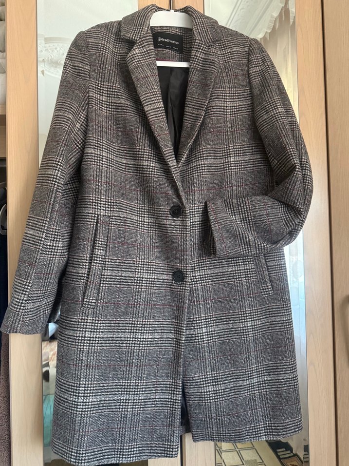 Gri ekose desenli midi kaban, kesik yakalı ve düğmeli tasarıma sahiptir. Ofis ve günlük kullanıma uygun, uzun kollu ve rahat kesimdir.