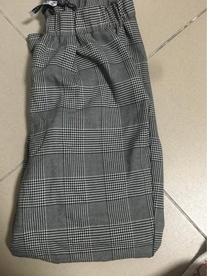 Gri Ekose Desenli Pantolon
