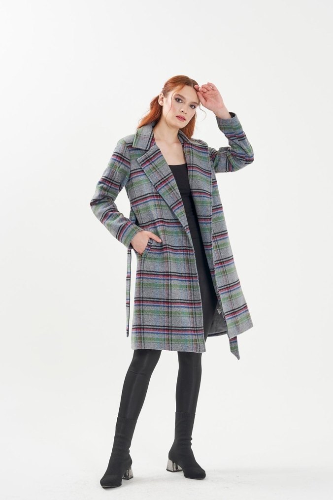 Ürün yeni ve etiketlidir uzunluk 100 cm en 52cm L bedendir . Ekose desenli, kemerli ve yan cepli uzun kaban, şık ve yapılandırılmış bir görünüm sunar. Serin havalar için uygundur.