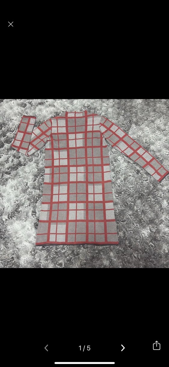 Gri Ekose Desenli Uzun Kollu Kadın elbise