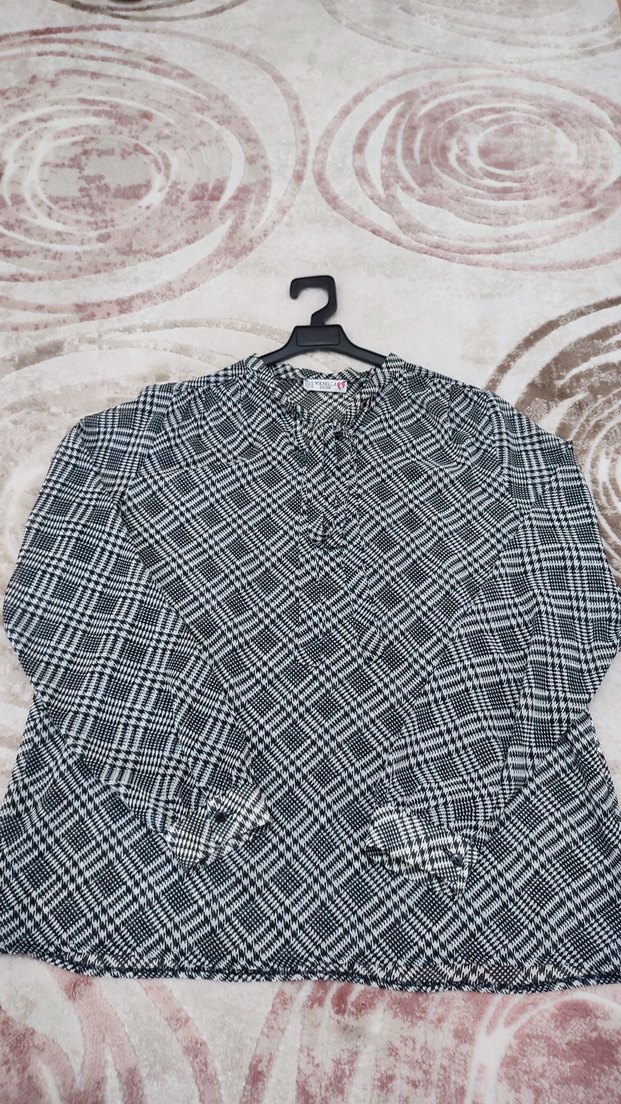 Gri Ekose Desenli Uzun Kollu Kadın Gömlek