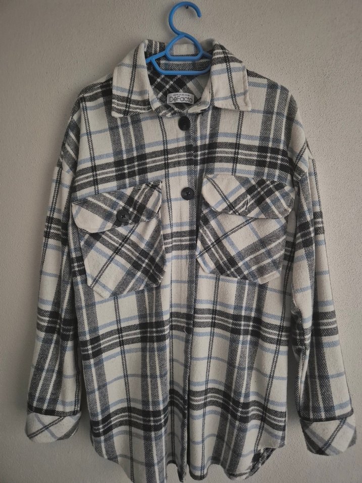 Gri ekose desenli bu gömlek, düğmeli ön kısmı, uzun kolları ve kesimli yakasıyla dikkat çeker. Yumuşak ve sıcak kumaştan rahat, bol kesim midi boydadır. Tekliflere açık
