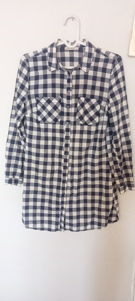 Gri ekose desenli, düğmeli ve yakalı uzun kollu pamuklu gömlek. Rahat kesimiyle günlük kullanıma uygundur. Göğüs 50 Boy 100 cm